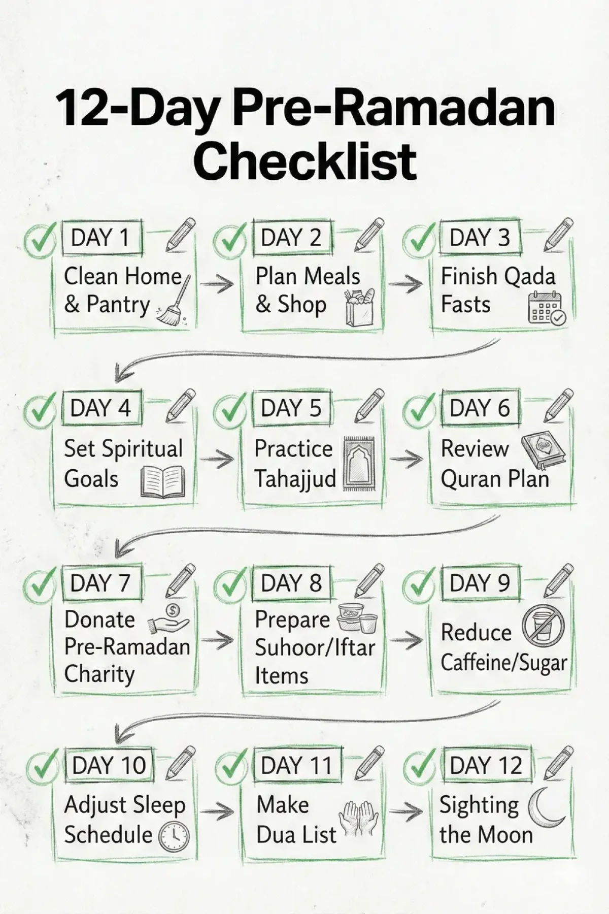 So we designed a 12 days pre-ramadan checklist you can follow to be prepared.